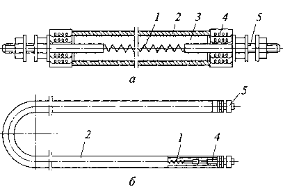 Рис. 3.26. Электронагреватели: а — прямые; б — U-образные
